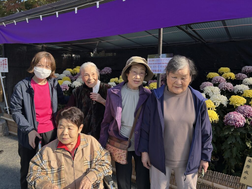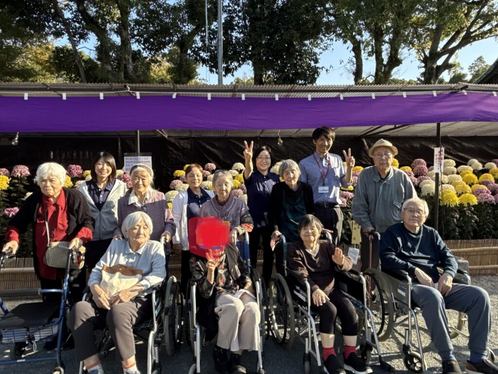 2025/11/15微笑園 宗像大社 菊花展 こんにちは、デイサービスセンター微笑園です。 今回はご利用者の皆様と宗像大社へ散策にいきました。 たくさんの菊の作品を観賞し、皆様とても楽しまれているご様子でした。
